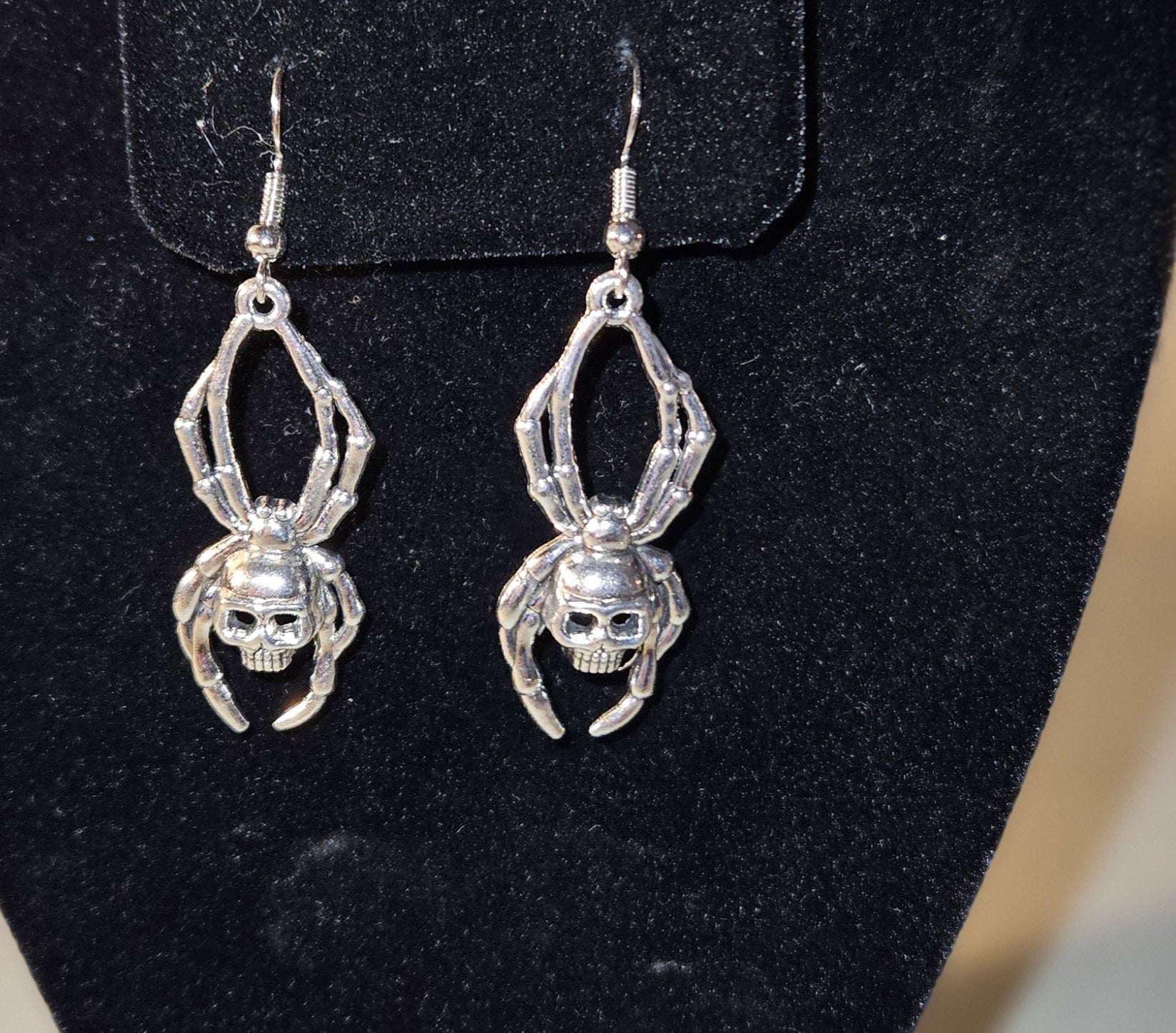 Silver Dangle Spider Skull Face